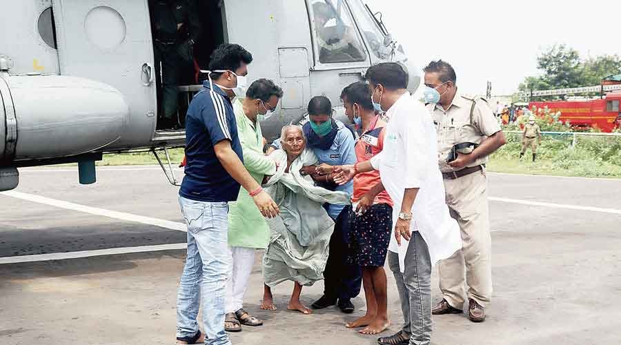 Shibshankar Samanta, a grandson of the elderly woman, who was also rescued by the chopper, said: “My grandmother did not agree to come with us and said she would be happy on the roof. She came alone on the last trip. We did not want to lose her.”
