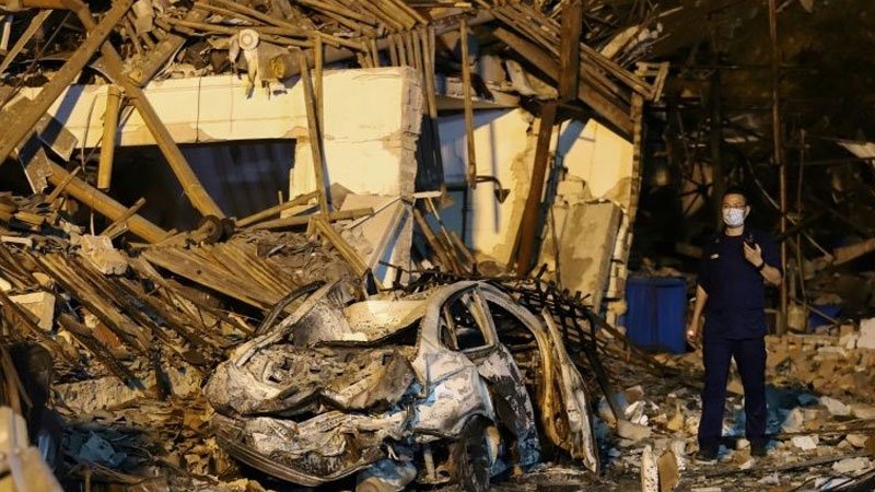 State news agency Xinhua reported Sunday that there was a second blast when the truck fell onto a workshop near the expressway after the first explosion.