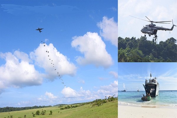 The major training activities comprised combat free fall and para drop from strategic lift aircraft C-130 by a company of Para Commandos from the mainland, action by MARCOS of Indian Navy and Special Heli Borne Operations (SHBO) by Army Ghatak Platoons. Troops of the Indian Army, Navy and Air Force were mobilized for amphibious landing in close co-ordination with the para drop of special forces. Ground based manoeuvres, tactics and procedures for joint operations in the Andaman and Nicobar Islands were rehearsed. The exercise focussed on enhancing inter-operability and synergy among the three services to maximise combat potential.