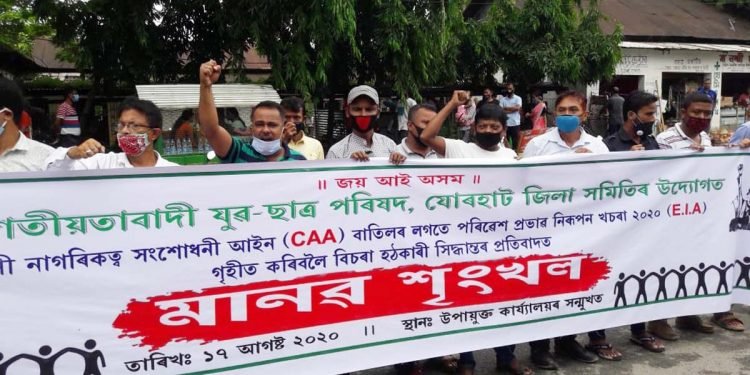 The Asom Jatiyabadi Yuva Chatra Parishad (AJYCP) members vehemently opposed the draft Environment Impact Assessment (EIA) 2020 notification saying that it would adversely impact Assam.