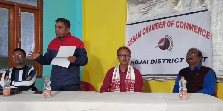 NIKHIL MUNDRA, HOJAI: The Hojai district unit of the Assam Chambers of Commerce has submitted a memorandum to Hojai MLA Shiladitya Dev, demanding that a pillar be constructed in place of a wall guard up to the end of the railway overbridge in Hojai.