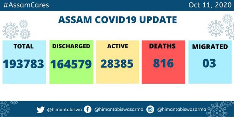 With the detection of 396 new cases and 5 more deaths reported in the last 24 hours, Assam’s COVID19 tally increased to 1,93,783 while the death toll stood at 816.