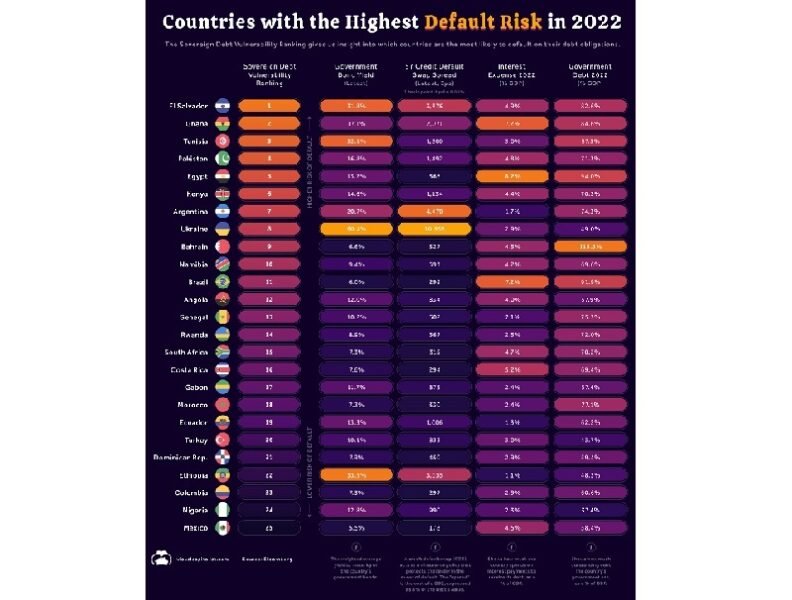 Recently, Canadian news agency Visual Capitalist using data of Bloomberg published the names of 25 countries which are exposed to the default risk.