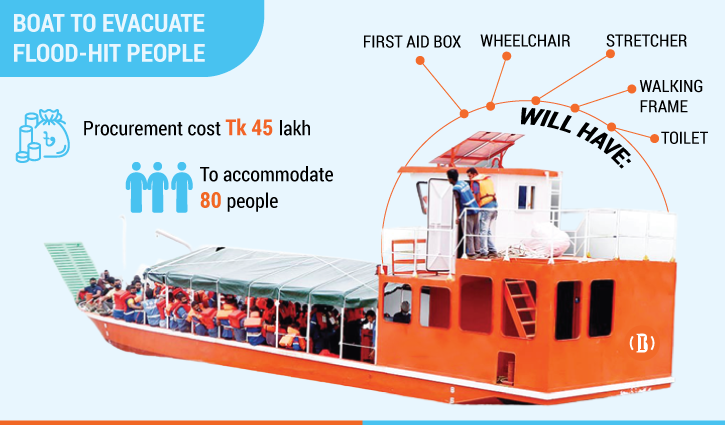 Referring to the state minister for Disaster Management and Relief, Mohammed Enamur Rahman, an official of this ministry said special arrangements will have to be made for rescuing and relocating flood-hit women, children and the disabled using these boats to take them to nearby shelters.