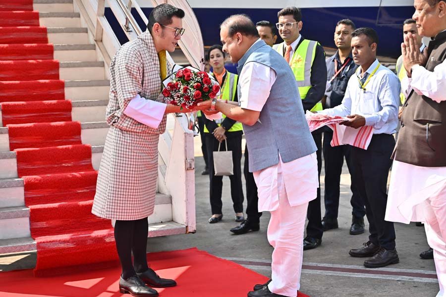 The 43-year-old king of the neighbouring Himalayan country was received by Chief Minister Himanta Biswa Sarma, his cabinet colleagues and senior officials of the state government at the Lokpriya Gopinath International Airport