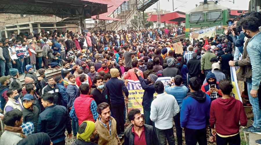 Asked about the agitation, Bihar additional director general of police (rail) Nirmal Kumar Azad told The Telegraph: “The protests are happening at five or six places in the state. Most of the protesters are students and they are aggrieved about some RRB results. We are trying to pacify them. Slight force has been also used at a couple of places to disperse them. So far, nine FIRs have been registered. We have arrested four and are on the lookout for others who are unnamed.”
