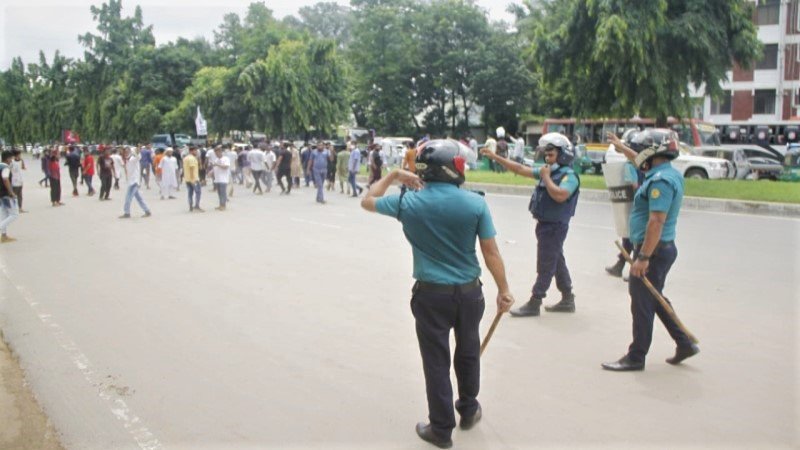 At that time, the police had an argument with Aminul Haque. At one stage, the police charged batons on them and fired teargas shells.