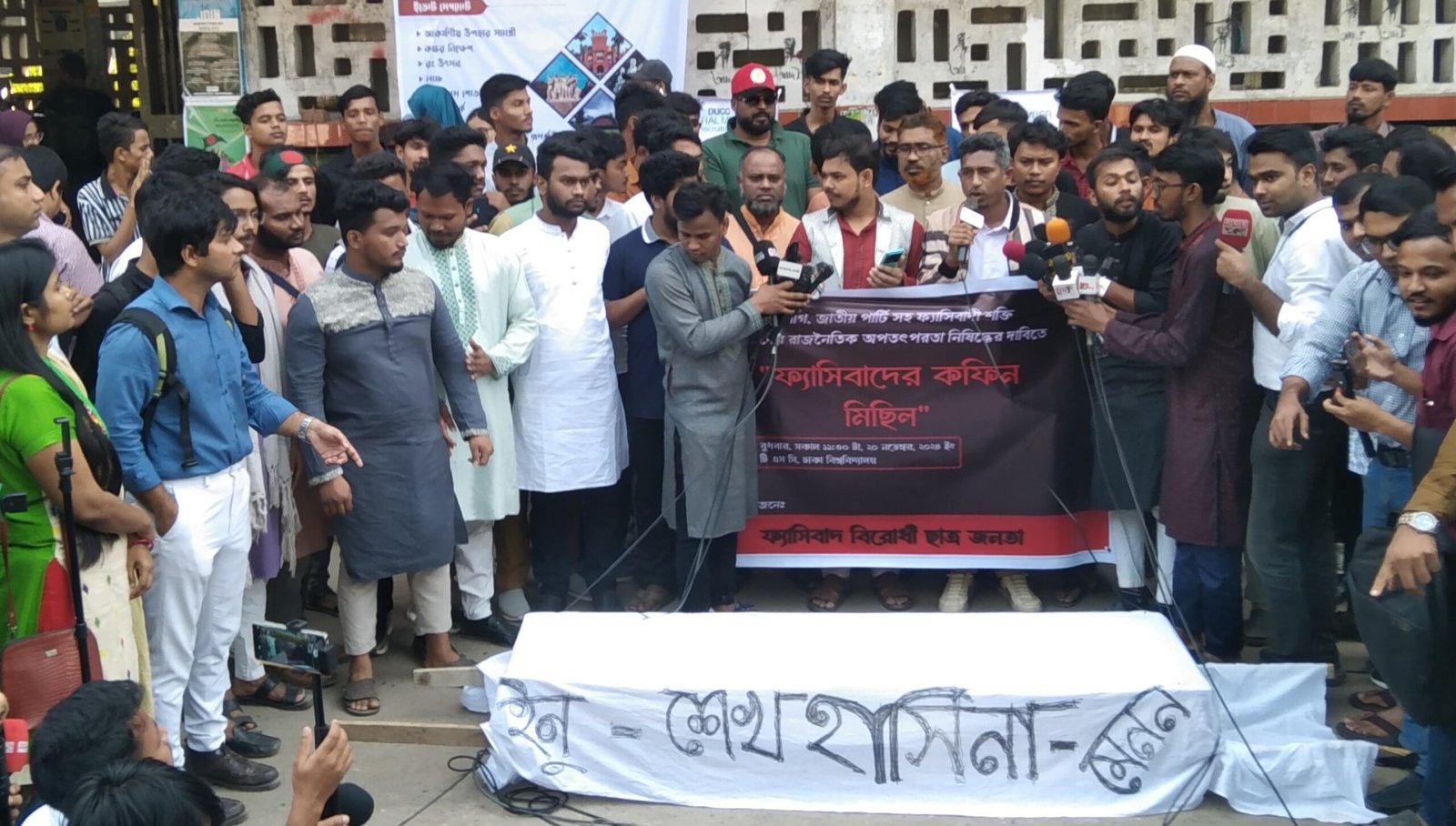 Following the namaz-e-janaza, a coffin procession with the demand to ban AL was brought out from Shaheed Minar that ended near Shahbagh intersection.