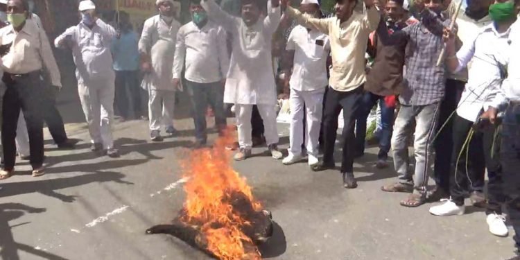 In protest against the passage of the farm bills, the Tripura Congress burnt the effigy of Prime Minister Narendra Modi in Agartala on Monday.