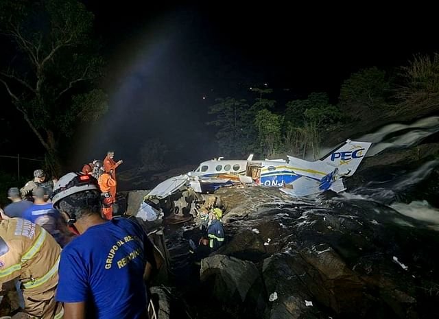 Local TV showed footage of firefighters working to remove the bodies from the plane, which crashed in a rocky area next to a waterfall.