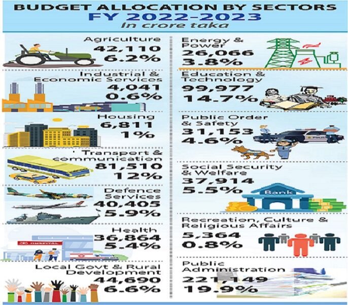 Tk 1,135.76 billion has been set aside inFY 2022-23 budget, which is 16.75 percent of the total budget and 2.55 percent of GDP.
