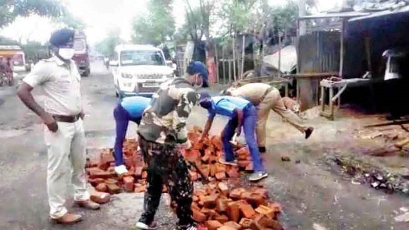 Policemen, including officers posted at Milki police outpost in Malda, along with volunteers, hit the highway with bricks, mortar and tools. They stopped at regular intervals, unloaded bricks and mortar, and filled potholes and craters that had come up on the highway these past few months.