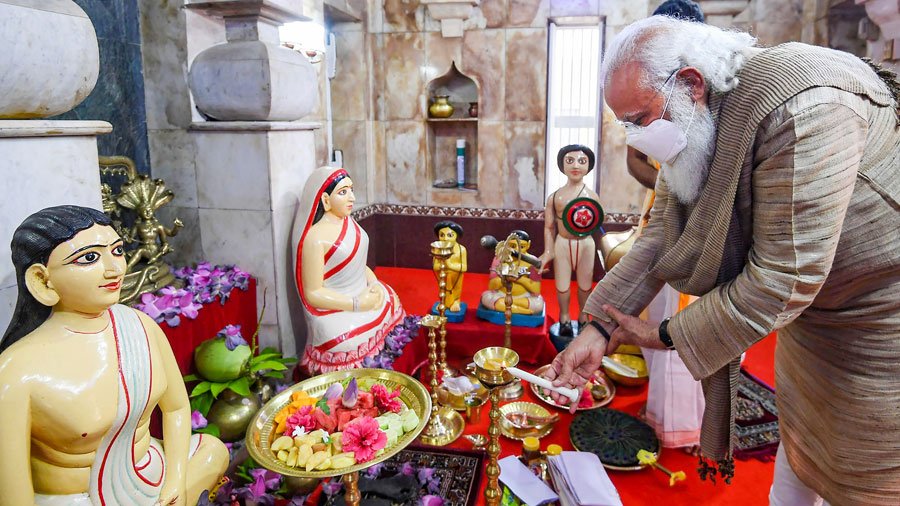 The CM was referring to the PM offering prayers at a temple in Bangladesh’s Orakandi, the birthplace of Hindu mystic figure and Matua community’s spiritual guru Harichand Thakur, earlier in the day.