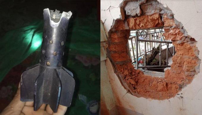 On Sunday night, mortar shells were fired from the army headquarters in Kyauktaw on civilian targets without any apparent reason.