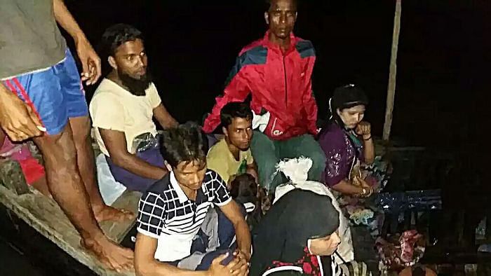Maung Zarni: Rohingya refugees fleeing from Myanmar sitting in a boat after Bangladesh coast guard stopped them on Naf river from entering the country.