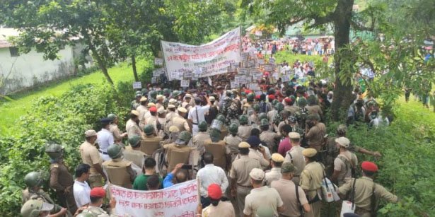 Mukesh Kr Singh, Assam: Around one thousand residents of Alomganj Part -9 village in western Assam’s Dhubri district on Thursday gathered on National Highway -17 at Panbari area to protest against the government’s decision to evict them.
