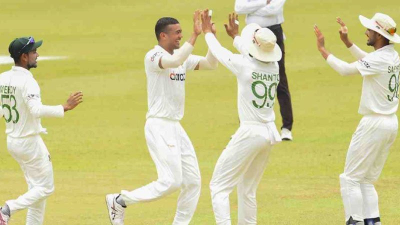 Bangladesh grabbed the third wicket of the session when Taijul removed Dhananjaya for two. Najmul Hossain Shanto took the catch in second chance after the Liton fumble. Before the wicket-taking delivery, Taijul showed some glimpses of turn and bounce on the wicket.