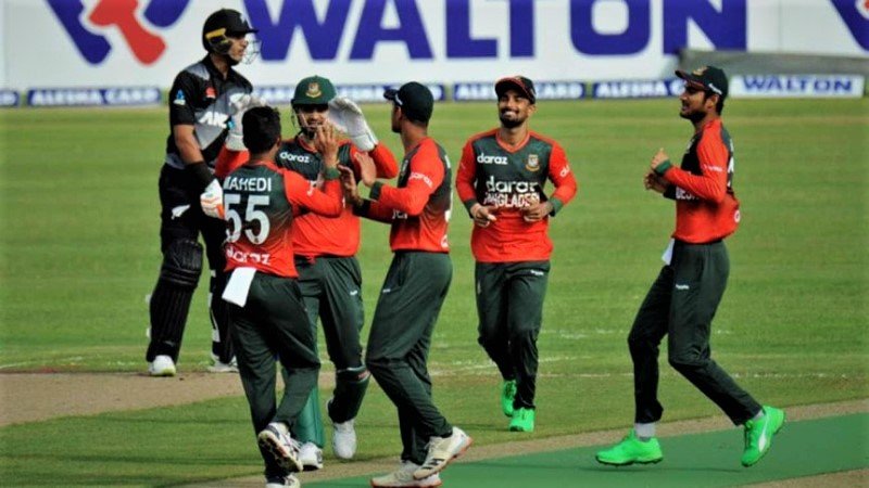In the last over, New Zealand needed to score 20 to level the series. They were given a good chance when Mustafizur conceded a four in a no-ball in the last over, and their target came down to eight off the last two balls, but they failed to achieve that.
