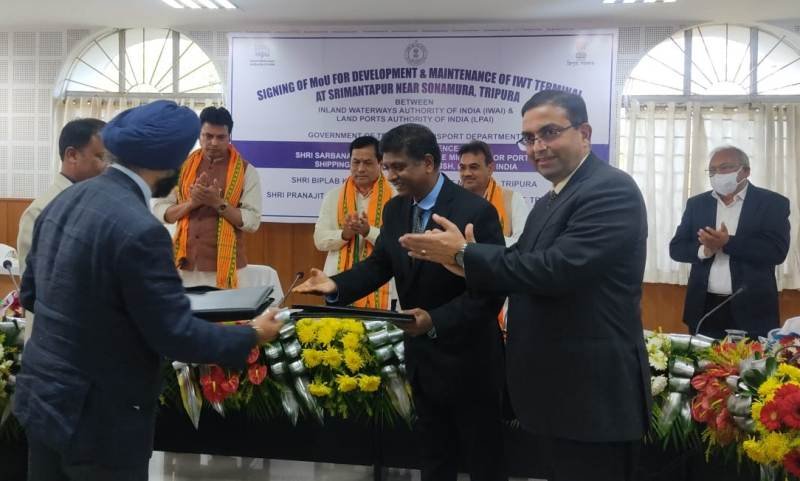 Tripura News Desk: The Tripura government on Tuesday signed a memorandum of understanding (MoU) with the Inland Waterways authority and Landport Authority of India for the development and maintenance of the Inland Waterways Terminal located near Srimantapur, under Sepahijala district.