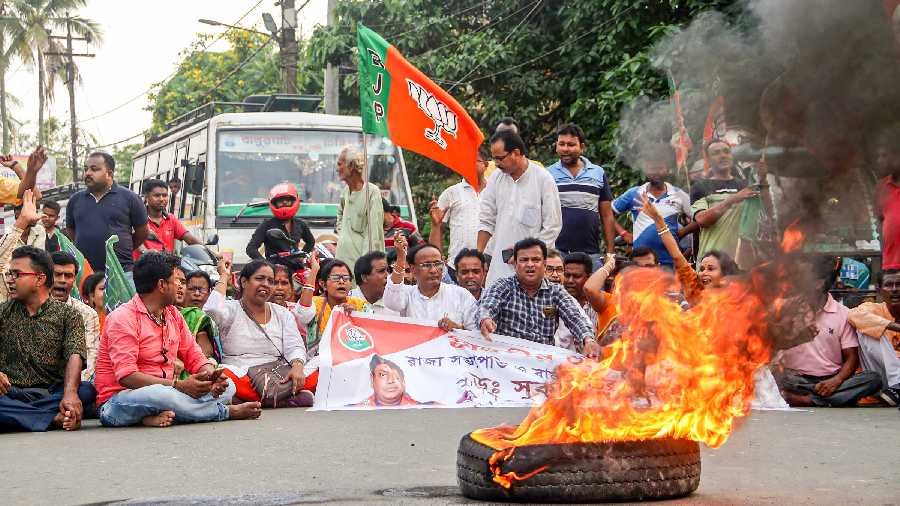 On Saturday, incidents of stone-pelting, setting police vehicles on fire and damaging public properties were reported in Howrah’s Panchla.