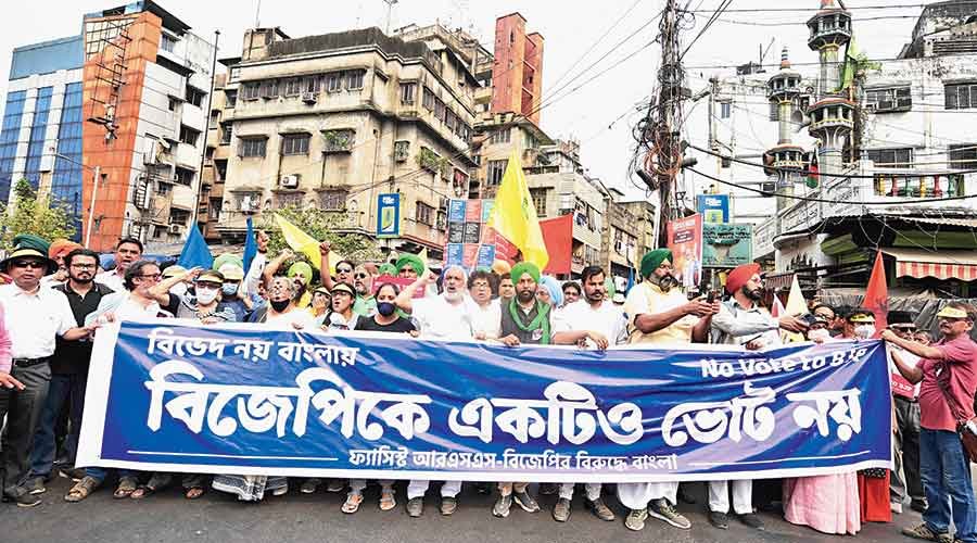 Four conveners of Bengal Against Fascist RSS-BJP — the organisers of Wednesday’s rally — had been arrested by the Trinamul government in 2017 when they protested against the construction of a power substation in Bhangar.